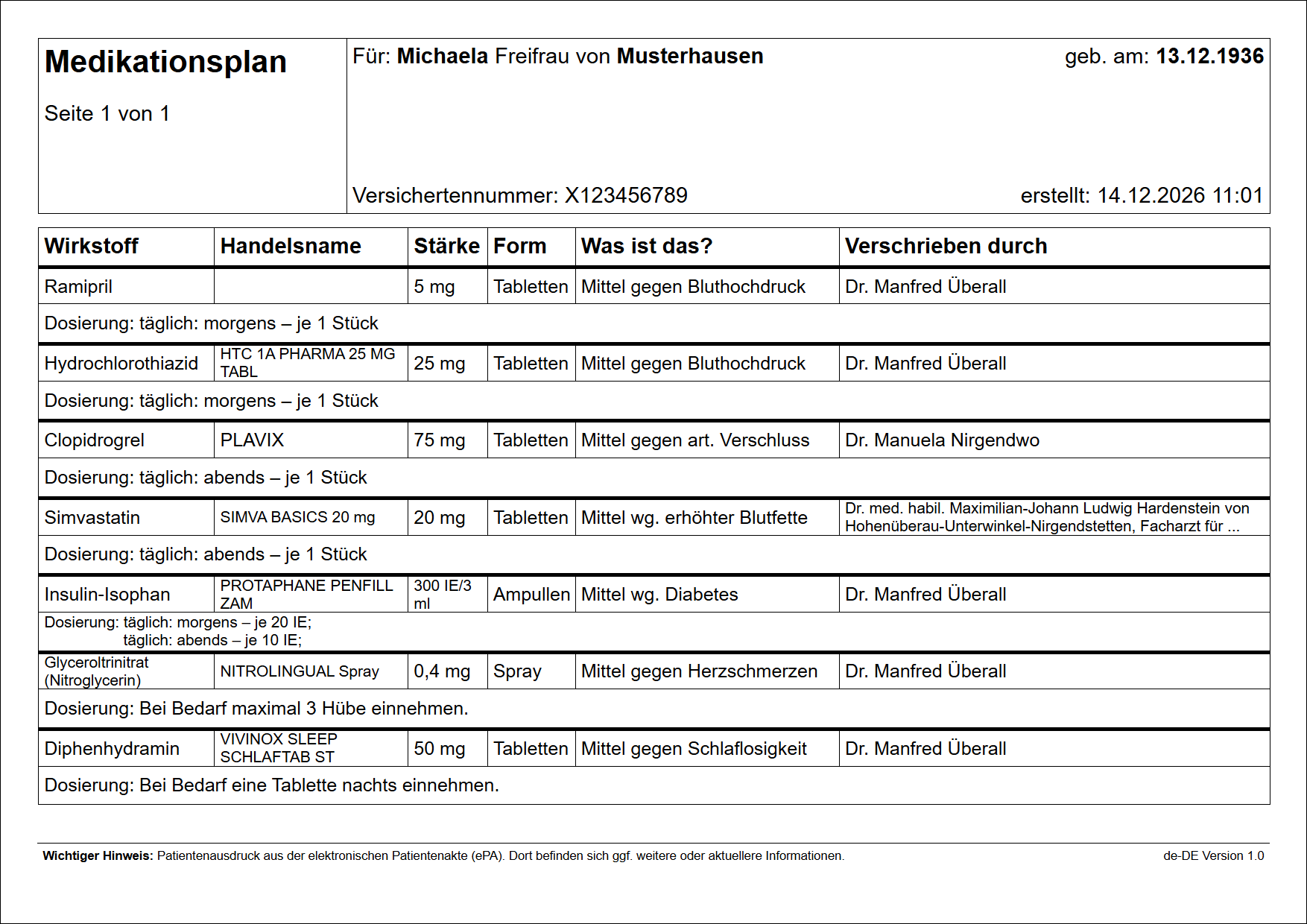 | Versichertennummer | [EPAPatient]Patient.identifier:KVNR |